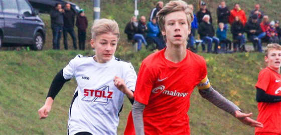 Letztes Jahr in der U15: Fuchsstadts Laurenz Lösch schirmt die Kugel geschickt ab gegen den heranstürmenden Untererthaler Moritz Sykora.