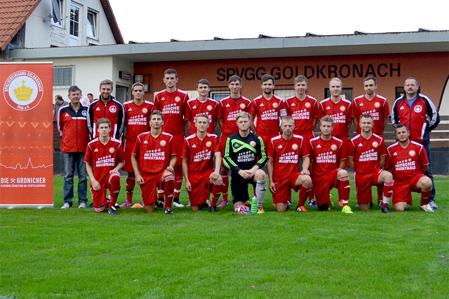 SpVgg Goldkronach, Saison 2015/16: Hintere Reihe von links: Spielleiter Peter Pittroff, Alexander Arndt, Fabian Blechschmidt, Daniel Oberst, Fabian Neuner, Franz Rabenstein, David Zinke, Max Rabenstein, Johannes Schullerus, Hannes Rabenstein, Trainer Stefan Sommerer. Vordere Reihe von links: Lukas Weihrauch, Christopher Neuner, Nik Mertins, Alexander Ruppel, Markus Vogel, Sebastian Katholing, Steffen Zinke, Marius Stanit.