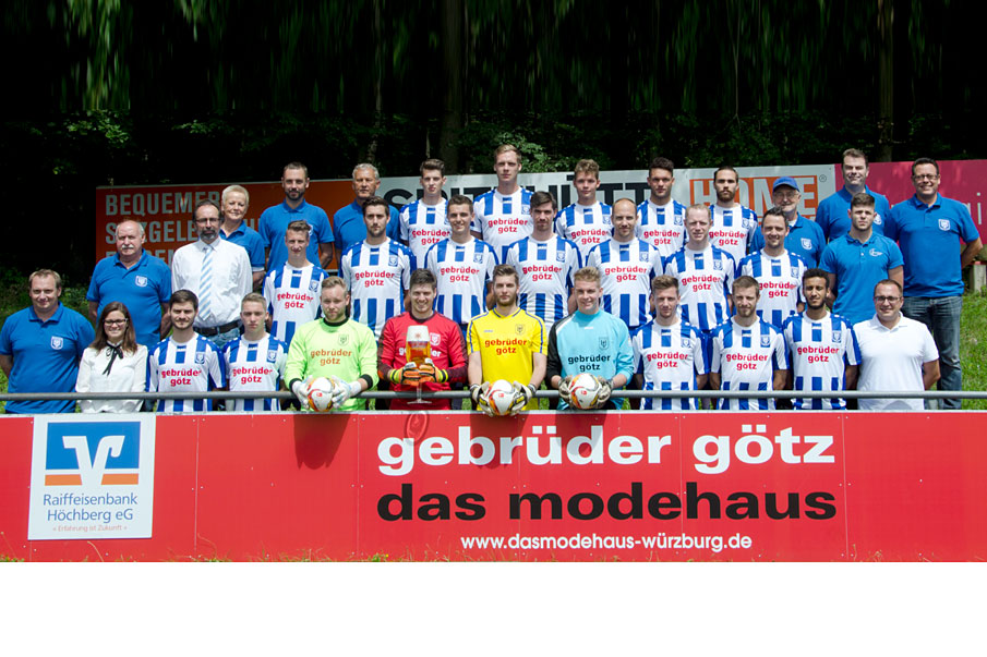 hinten von links: Thomas Kaiser (Trainer), Berthold Habermann (TW-Trainer), Ramon Schmitt, Lukas Moser, Christian Ettinger, Julian Geiger, Julian Hippacher, Rudi Hußlein (Sportbeauftragter), Ralph Gerlich (Stadionsprecher), Klaus Conrad (stellv. Vorstand-Sport) mittlere Reihe von links: Peter Bauer (stellv.Vorstand - Marketing), Konrad Harant (1. Vorstand), Tim Popp, Matthias Grünewald, Yanik Unger, Simon Borgmann, Tobias Riedner, Pascal Bloemer, Jens Fromm, untere Reihe von links: Sebastian Genheimer (Spielleiter), Bianca Kriener (Raiffeisenbank Höchberg), David Bergmann, Marvin Voll, Christoph Ritter, Matthias Wohlfart, Tobias Weihs, Dominik Daxhammer, Domink Römer, Daniel Woller, Alexander Priesnitz, Sebastian Cibura (Würzburger Hofbräu) es fehlt: Tristan Schmid