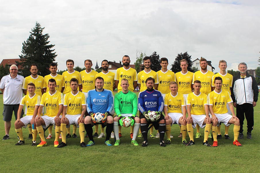 Hintere Reihe v. links: Spielleiter Roland Beringer, Daniel Alt, Maximilian Dietz, Simon Schug, Matthias Vogt, Benedikt Quinger, Christian Quinger, Simon Schütz, Fabian Gube, Sebastian Amon, Thomas Stölzel, Markus Ziegelhöfer, Trainer Klaus Gunreben