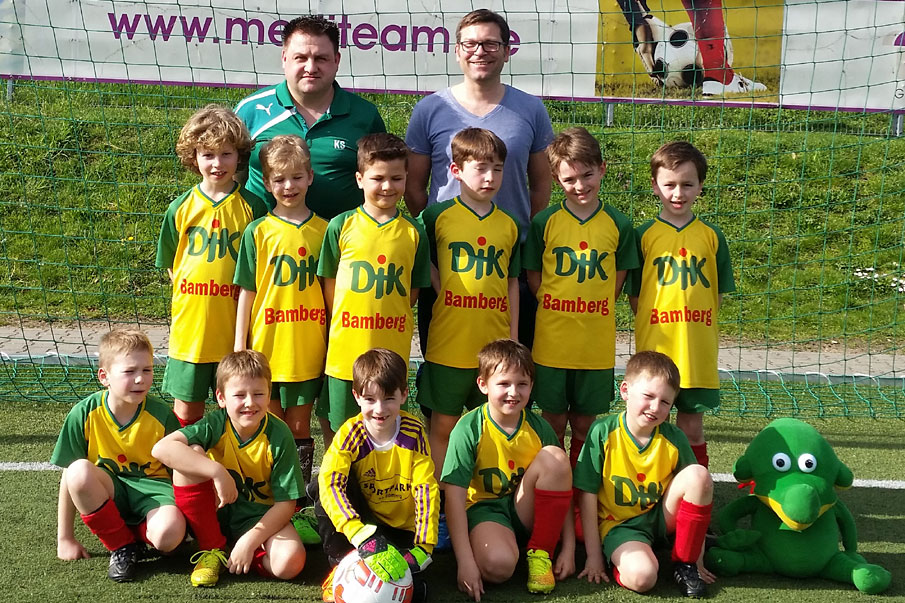 vorne v.l. Leon Schönlein, Maximilian Schumm, Michel Rößler, Elias Simson, Simon Schönlein, Maskottchen Kroki