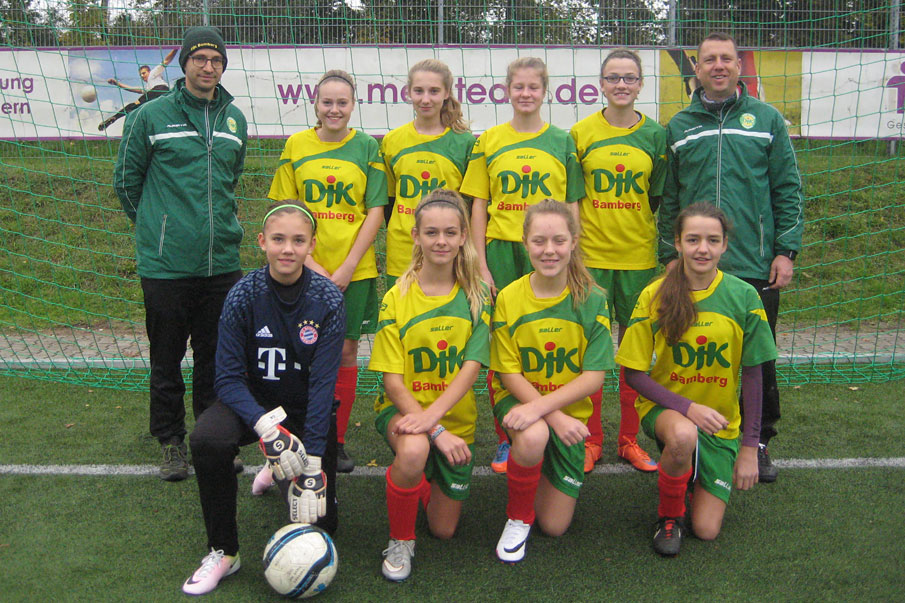hinten v.l. Trainer Alexander Strätz, Lea Bernhardt, Pauline Reinfelder, Mathilde Andree, Celina Horcher, Trainer/Betreuer Klaus Schmitt