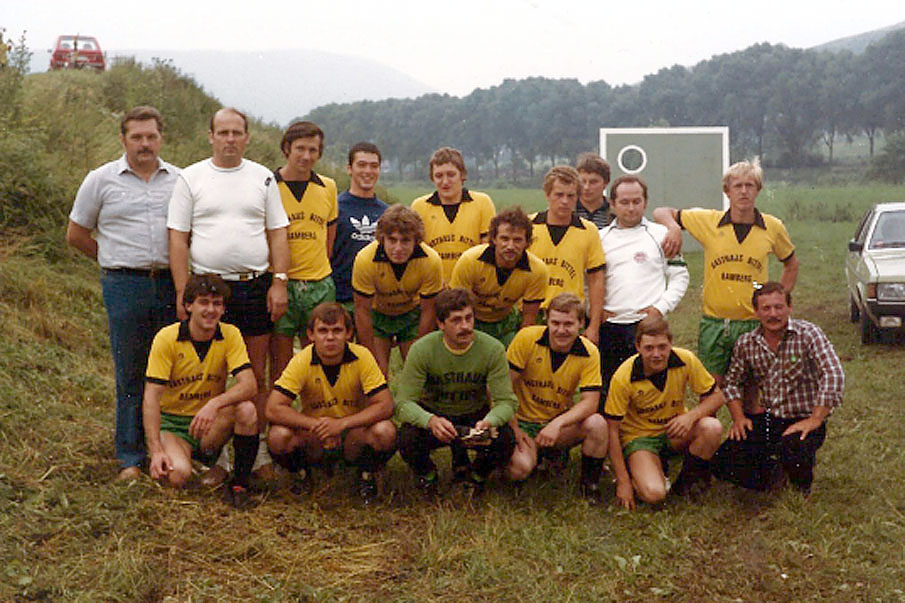 hinten v.l.: Trainer Helmut Schlegel, Torwarttrainer Armin Koch, Werner Hornburg, Perry Küfner, Walter Reißner, Wolfram Scheidel, Stefan Schmidt, Günter Ziegler, Wolfgang Wagner