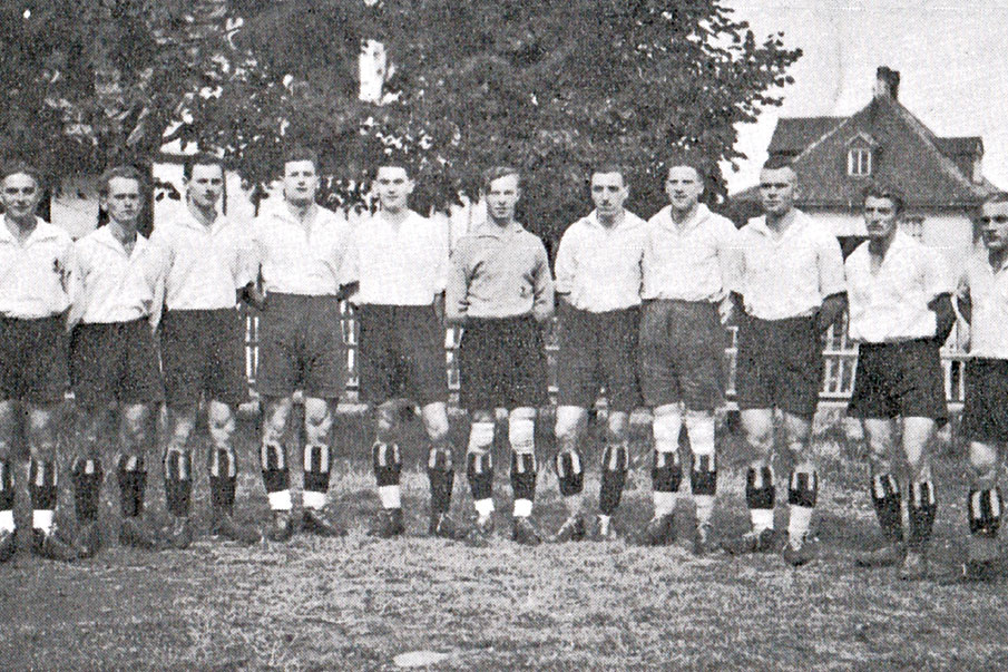 Auf dem sportlichen Höhepunkt: in der Saison 1931/32 errangen die Freien Turner aus Schney zum fünften Mal den Titel eines Bezirksmeisters im ATSB und stießen anschließend bis ins Finale um die Nordbayerische Meisterschaft vor. Von links nach rechts: Hans Gutgesell, August Kalb, Anton Schöpf, Richard Schöpf, Heinrich Hohmann, Eduard Friedrich, Karl Debus, Andreas Förtsch, Albert Tischler, Baptist Büttner, Andreas Dietz.