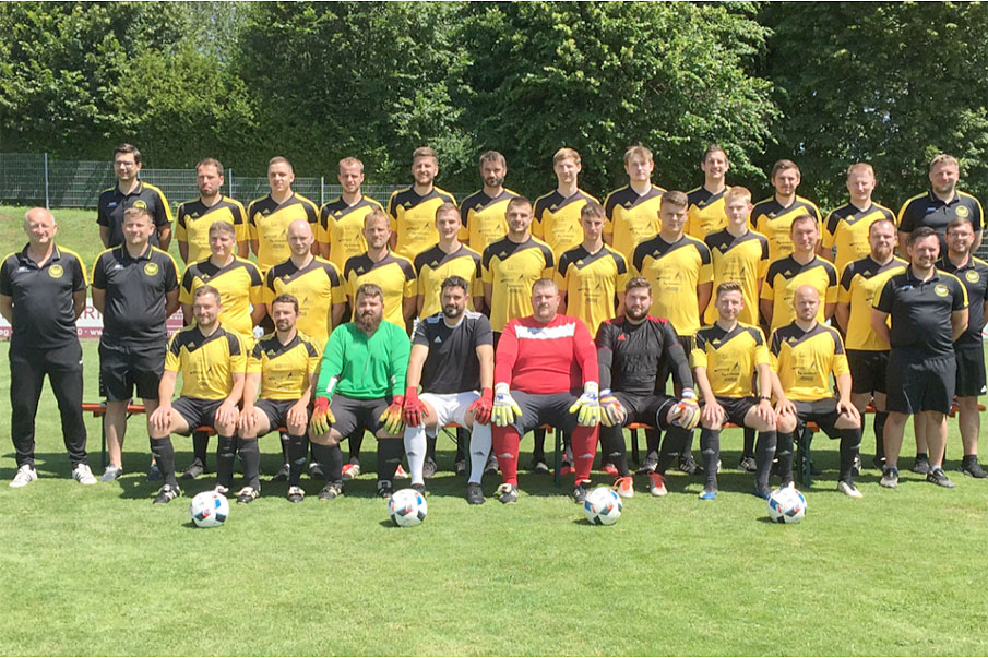 FC Adler Weidhausen, Spielkreis Coburg-Kronach. Hinten von links: 1. Vors. Philipp Knauer, Tobias Hübner, Alexander Stutzki, Julian Lang, Tobias Sabbarth, Daniel Friedrich, Jan Weihermüller, Dorian Bachmann, Patrick Hellenbrand, Justus Hofmann, Manfred Angermüller, 1. Vors. Sebastian Gößl. Mitte von links: Spielleiter Uwe Weihermüller, Spielertrainer René Wicht, Lucas Hess, Franz Lindner, Daniel Jahn, Lucas Wicht, Patrick Wicht, Theo Geßlein, Leon Walch, Manuel Marschall, Florian Büschel, Florian Dressel, stellv. Vors. Christopher Frank, Co-Trainer Julian Dauer, Fußball-Abteilungsleiter Timo Walch.
