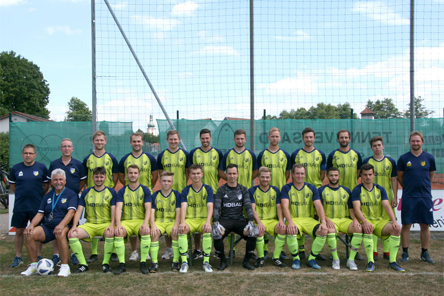 Betreuer Peter Metschl, Spielleiter Ralf Tetzeli von Rosador, Manuel Lehner, Max Gsell, Dominik Schleinitz, Fabian Friedl, Marco Wöhrl, Thomas Hofmann, Max Zerreis, Markus Schäffner, Marcel Rieger, Thomas Kohl (stehend, v.l.n.r.). Betreuer Siegfried Sattler, Spielertrainer Daniel Maier, Paul Gropp, Nico Metschl, Julian Schäffner, Stefan Sattler, Simon Schwendner, Daniel Meier, Devit Akdemir, Benedikt Schindler (sitzend, v.l.n.r.).