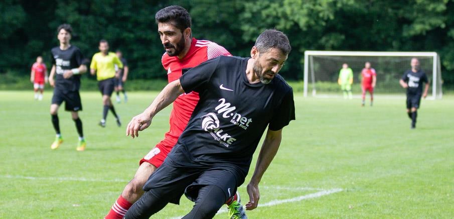 Kapitän Emrah Sahin und der 1.FC Trafowerk (in schwarz) hatten dem Türk FK Gostenhof nichts entgegenzusetzen, vor allem Routinier Mehmet Marabaoglu glänzte mit einem halben Dutzend Treffern beim 8:2-Kantersieg am Stadionnebenplatz. Die Torjägerwertung geht jedoch an Mitspieler Ayhan Avci mit starken 34 Treffern.
