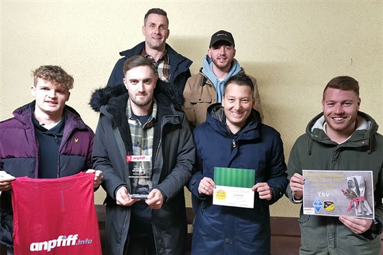 zur anpfiff.info-Trophäe und einem Satz Trainingsleibchen erhielten die Kicker