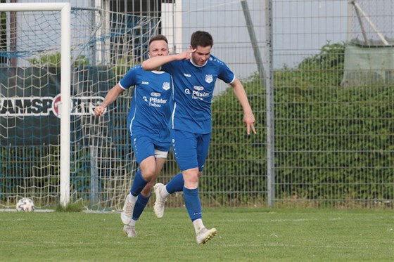 Der erlösende Moment. Soeben hat Niklas Schmitt das Siegtor in Stegaurach erzielt.
