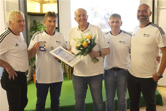 Nach einer Laudatio von Dieter Stettner überreichte Hubert Richter dem Ehrenmitglied Rudolf "Rula" Frank die Verbands-Ehrenmedaille in Gold für seine besonderen Verdienste. Diese hat er nicht nur für die GFT, sondern auch für den Verband, wo er als Sportrichter und Spielleiter tätig war. Aber eben auch als begabter Fußballer und vor allem langjähriger Trainer quer durch alle (Alters-)Klassen. Der bei seinen ehemaligen Spielern noch heute äußerst beliebte 85-Jährige hat einen reichhaltigen Erfahrungsschatz, aber auch das eine oder andere unvergessliche Erlebnis angesammelt. Gewohnt schlitzohrig gab er Beispiele davon zum Besten. Zwei Sachen stehen fest: Rula ist eines der letzten Originale im Spielkreis und diese Ehrung war mehr als verdient.