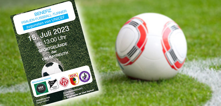 Während der Countdown für die Frauenfußball WM läuft, kommen am Samstag,15. Juli (13:00 Uhr) auf dem Sportgelände der Uni Bayreuth fünf hochkarätige Teams aus der Umgebung zusammen und spielen für den guten Zweck. Bereits im Vorjahr war das Turnier ein voller Erfolg und auch dieses Jahr hofft Veranstalter Pascal Hanisch auf zahlreiche Zuschauer und Spenden.