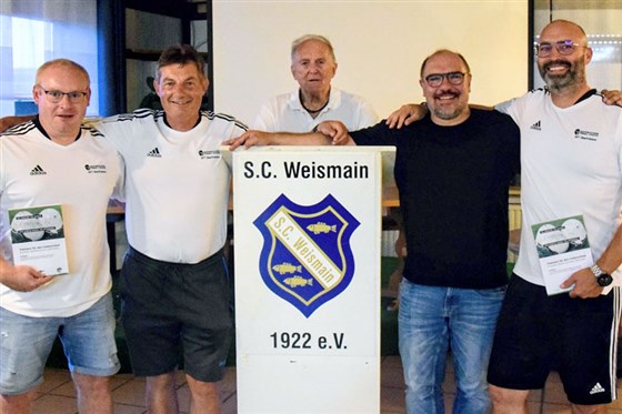 Bei der Juli-Fortbildung der GFT in Weismain (v.li.): Marcel Pavel (GFT-Vorstandschaft und Co-Trainer der Vorführtruppe Mönchröden), Vorsitzender Hubert Richter, Rudolf Frank, Referent Oliver Pelzer und GFT-Pressesprecher Alex Grau.