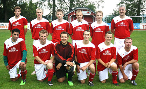 Strahlende Sieger vom TSV Presseck II. Stehend von links: Daniel Färber, Dominik Gareis, Florian Krügel, Philipp Söll, Rene Kaiser und Spielertrainer Klaus Kleszcz sowie knieend von links: Niyazi Altundas, Joachim Eberhardt, Marc Konrad, Marc Jungbauer, Jo-Al Hillebrandt, Christian Burger. |