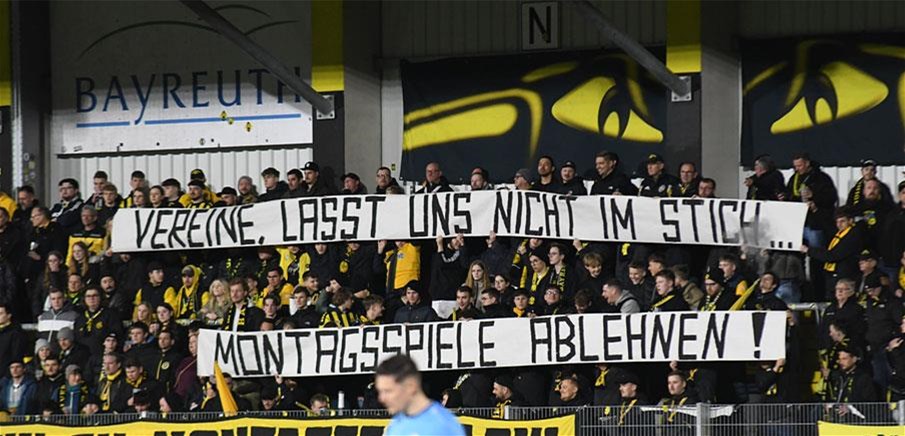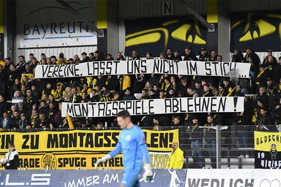 Auch bei den Fans der SpVgg Bayeuth formiert sich der Protest gegen die Montagabend-Spiele.