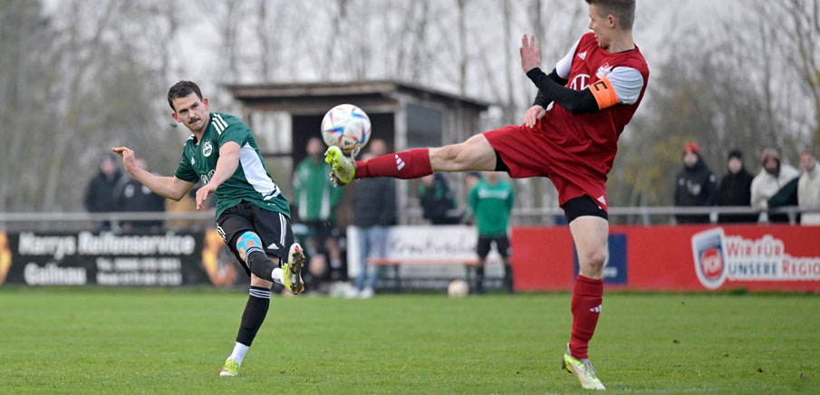 Florian Gebhart konnte zwar mit seinem Anschlusstreffer die Hausherren zurück ins Spiel bringen, in dieser Szene blieb Schillingsfürsts Torjäger aber ohne Erfolg und der VfB musste sich mit einem 2:2 gegen den Aufsteiger SG WIND begnügen.