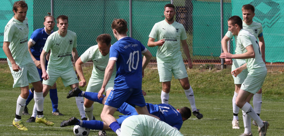 Der TSV Langenzenn (in blau) ließ sich von der SG Neuhof/Trautskirchen wahrlich überrumpeln und unterlag am Ende mit 0:4 beim Tabellenzweiten, der am Sonntag zum Gipfeltreffen in Dietenhofen gastiert.