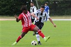 Viel Einsatz, aber kaum Torchancen gab es im zweiten Abschnitt zwischen dem SV Eyüp Sultan (in weiß) und dem TSV Buch II zu sehen. Hier verhindert Buchs Marco Müller (l.) mit einem taktischen Foul einen möglichen Umschaltmoment von Eyüps Mehmet Karanfil.