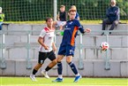 Cameron Crooks (in rot-weiß) traf kurz vor Schluss zum späten Ausgleich am Wegfeld und sorgte so zumindest für den ersten Zähler der Bucher Jungs in der noch jungen Spielzeit. Der SV Unterreichenbach (in grau) beendete derweil auch sein drittes Saisonspiel mit einer 2:2-Punkteteilung!