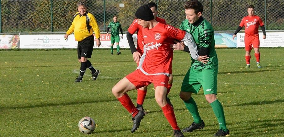 Der TSV Zirndorf (in rot) legte sich nach der 1:6-Hinspielklatsche im Rückspiel gegen Spitzenreiter ASV Weinzierlein ins Zeug und war durch das 1:1-Remis das erste Team, das dem Primus Punkte abnehmen konnte. Kurz vor Spielschluss wurde den Hausherren gar noch die Siegchance wegen einer vermeintlichen Abseitsstellung zurückgepfiffen.