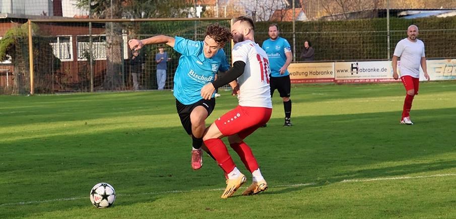 Weit entfernt vom Tabellenende fällt der ASV Buchenbühl (in blau) nicht erst seit dem 2:1-Heimsieg gegen den SV Laufamholz in den Winterschlaf und hat zum Jahreswechsel als Aufsteiger beste Karten für ein weiteres Jahr A-Klasse. Der SVL ging nach vier Zählern aus den vorherigen beiden Partien wieder leer aus und kann trotz der Pleite mit acht Zählern Vorsprung nach unten relativ entspannt ab Mitte März wieder angreifen.