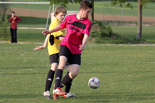 In der kommenden Saison wird Stürmer Dominik Herzing (in rot) wohl noch für die JFG Neubürg spielen