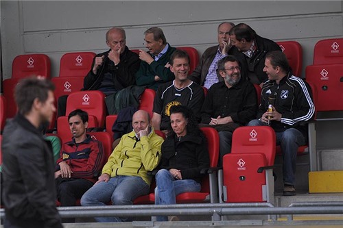 Volker Kemnitzer (gelbe Jacke) in Weismain am Rande der Bayernligapartie zwischen Bayreuth und Bamberg.