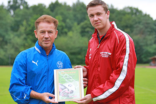 Links der Trainer der Saison der Bezirksliga Nord, Wilhelm Satzinger. Rechts