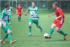 Doch es muss nicht beim Triple der Schweinfurter bleiben: Um die 150 Zuschauer sahen am Samstag das aufregende 2:2 der Schweinfurter U15 gegen den 1. FC Nürnberg II. Als kurz nach der Pause FC 05-Torwart Nicolas Riegler zum zweiten Mal überwunden war, schien alles auf einen Sieg des Tabellenführers gegen den Verfolger hinauszulaufen. Aber wer die Schweinfurter abschrieb, sah sich getäuscht, denn ihr bis dahin guter Auftritt wurde fast schon im Gegenzug mit dem Anschlusstreffer belohnt. Eine Strafraumsituation nach einer Flanke von rechts konnte der Club nur vor die Füße von Julius Sessler klären, der aus 15 Metern ins lange Eck zum 1:2 einschoss. Jetzt wollte der FCS mehr und er bekam es. Die 60. Minute brachte einen Freistoß aus zentraler Position, gut 22 Meter vor dem Nürnberger Tor. Fabio Feidel nahm Maß und schlenzte zum 2:2 ein. Jetzt bleibt zum letzten Spiel hin, kommenden Samstag bei der SpVgg Bayern Hof, immer noch die Chance auf den 2. Tabellenplatz. Dieser würde zum Erreichen der Relegationsspiele um den Regionalligaaufstieg genügen, da der 1.FC Nürnberg mit seiner zweiten Mannschaft daran nicht teilnehmen darf. Mit einem Sieg in Hof wäre dann der Meister der "Südstaffel", die ungeschlagene SpVgg Unterhaching, der Gegner in den Aufstiegsspielen. Allerdings sollten die Schnüdel gewinnen, denn am Mittwoch könnte Jahn Regensburg vor dem letzten Spieltag in einer Nachholpartie bis auf einen Punkt herankommen, trifft jedoch ebenfalls zu Hause auf Nürnberg II. Klappt es da nicht mit einem Sieg, dann reicht dem FC 05 in Hof schon ein Punkt.