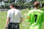 Die erste Sektdusche für Schweinfurts Trainer Ulli Baumann nach dem Match.