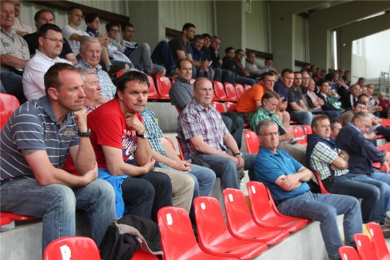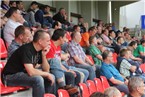 Aufmerksam verfolgen die lizenzierten oberfränkischen Fußballtrainer den Praxisteil, den Torsten Spittler mit den B-Junioren des FC Coburg im Weismainer Stadion demonstrierte.