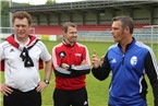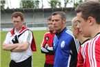 Zunächst stand, wie gewohnt, die Praxis im ehrwürdigen Weismainer Stadion an, wobei diesmal die B-Junioren des FC Coburg als Trainingsspieler eine gute Figur abgaben. Torsten Spittler geizte weder mit Kritik, noch mit Lob und die Jugendlichen mussten hochkonzentriert die Einheit bestreiten. Nach dem Aufwärmen mit dem klassischen 4 gegen 2 - Spittler hält dies im Gegensatz zum 5 gegen 2 für sinnvoll - folgten Übungsreihen zum Aufbauspiel aus der Viererkette, zur Spielverlagerung und zum Erarbeiten von Torchancen. So gibt es laut Spittler z.B. für den Rechtsverteidiger nur drei Alternativen: Pass in die Spitze, weiter diagonaler Ball oder Pass auf den rechten offensiven Mittelfeldspieler. Für Lahm quasi: Mandzukic, Ribery oder Robben... Letzte Alternative wäre Neuer, also Rückpass. Altbewährte Mechanismen wie das Kreuzen der Stürmer, das Hinterlaufen der Außen und der gut temperierte Pass in die Tiefe gelten immer noch, "wie zu Zeiten von Heinz Eger", wie Spittler anmerkte.