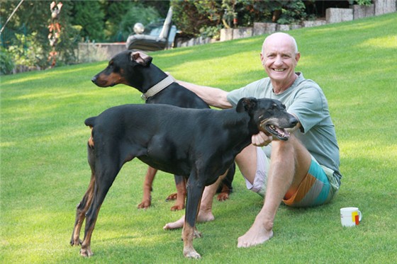 Drei, die zubeißen können, wenn es notwendig wird: die nach dem Ende seiner aktiven Karriere gewonnene Zeit am Wochenende verbringt Günther Reitzner gerne auch mit seinen beiden Dobermann-Damen Akira und Maja.