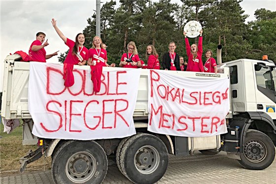Unmittelbar nach dem Schlusspfiff machte nicht nur die Meisterschale die Runde, sondern auch der Kreispokal, mit dem die DJK durch einen 2:0-Finalsieg über Dauerrivale RSC Oberhaid das Double 2017 perfekt machte, wanderte mit auf den Laster, der die Erfolgskickerinnen zwei Stunden lang durch den Ort manövrierte, wo die feierwütigen Damen Anlauf nahmen für eine legendäre Nacht, die vor dem Sportheim der DJK Teuchatz ihren Höhepunkt erreichte. Spielgestalterin, Antreiberin und Kopf der Mannschaft, Julia Lukard, gab dabei nicht selten den Ton an: "Wir geben Gas, wir kämpfen viel und gewinnen jedes Spiel. Wir sind die besten auf dem Jura und die geilsten auf der Welt!", so der Schlachtruf der DJK-Damen, für das Weißwurstfrühstück am "Sonntag danach" nur eine weitere Zwischenstation war bei den Feierlichkeiten zum größten Triumpf einer Frauenfußballmannschaft der DJK Teuchatz.