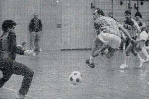 Es war die vierte Auflage der Hallenkreismeisterschaft. In der Vorrundengruppe 3 gelang dem C-Klassisten TSV Fischbach in der Altenfurter Sporthalle bei toller Derbystimmung vor rund 300 Zuschauern eine faustdicke Überraschung. Mit 18:2- Toren und 8:0-Punkten zog der TSV mit seinem Torjäger Zitzmann (acht Treffer) vor dem VfL Nürnberg, der als Zweiter ebenfalls weiterkam, in die Zwischenrunde ein. Auf der Strecke blieb dagegen in dieser Gruppe Titelverteidiger TSV Altenfurt aus der Bezirksliga.