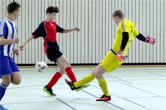 Michel Herrmann (gelb) ist nicht nur in der Halle ein sicher Rückhalt seines FC Eintracht Münchberg.