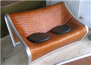 Der Eiermann-Zweisitzer aus den 1950er Jahren, entworfen von Egon Eiermann, ist eines der hervorstechendsten Ausstellungsstücke des Deutschen Korbmuseums in Michelau.