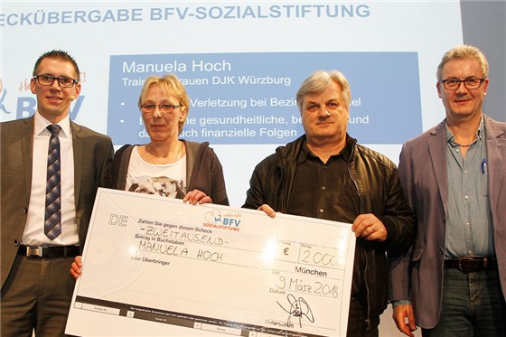 Scheckübergabe der BFV-Sozialstiftung an Manuela Hoch von der DJK Würzburg.