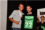 Im Anschluss trat Thomas Färber, der Sportliche Leiter der SG Quelle Fürth, ans Rednerpult und bedankte sich beim langjährigen Betreuer der Dambacher, Hans Postler. Der 87-Jährige verpasst auch heute noch kein Spiel der Quelle, ist bei den Auswärtsfahrten mit Landkarte bewaffnet immer mit im Bus. Aber nicht nur bei der SG Quelle, zu der er vor 27 Jahren als Mannschaftsbetreuer kam, hält Postler die Treue. Nach wie vor ist er ein gern gesehener und regelmäßiger Gast auf sämtlichen Sportplätzen der Region - im Amateurfußball versteht sich, denn auch Thomas Färber konnte sich nicht erinnern, dass Postler - mit Ausnahme der Regionalliga-Saison der Quelle - ins Stadion gegangen wäre.