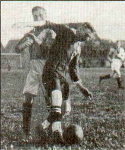 1922: Der Club schlägt überraschend Spartra Prag mit 3:0. Einer der besten beim Auswärtsspiel: Bumbes Schmidt (am Ball).