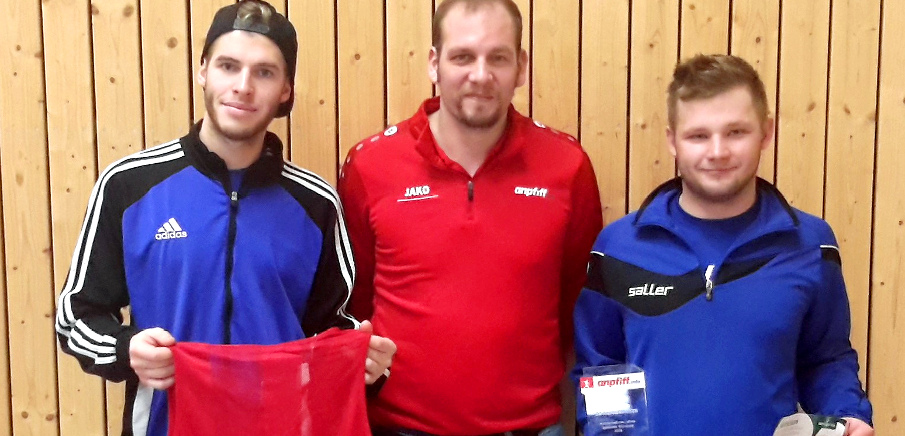 Bastian Reusch (mi.) bei der Preisverleihung für die SG Randersacker zur Mannschaft des Jahres 2018.