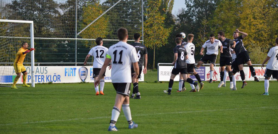 Kurz nach Kai Zachhubers Schuss (Nr. 5) konnte Jannick Vogt (Nr. 9) den Abpraller zur 1:0-Führung für die Gastgeber verwerten.