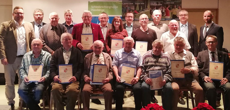 Die Geehrten der Schiedsrichtergruppe Haßberge mit links hinten: stellvertretender Obmann Alexander Bergmann,
