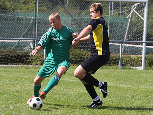Mit viel Einsatz behauptet sich Aufsteiger FC Viereth (hier mit Daniel Kruspel, re.) auch in der Kreisklasse und verdient sich seine Platzierung in der Rangliste der besten Teams 2009.