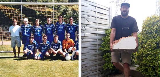 Einmal als Jungspund und Feldspieler - stehend Zweiter von rechts - und einmal fleißig im heimischen Garten: Jens Kapell.