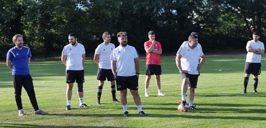 Ugur Cankaya (l.), im Dress des Post SV und Gökhan Cakmak (r.) nutzten die spielfreie Zeit, um sich mit der Trainerlizenz weiterzubilden.
