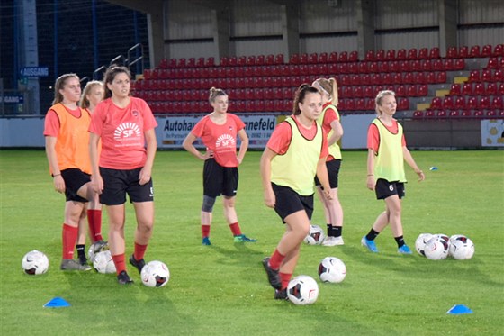 Die Spielerinnen des Bayernligisten 1.FFC Hof waren nicht nur während, sondern auch vor dem Training engagiert.