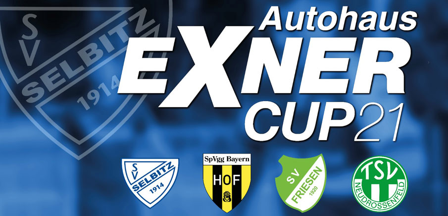Nach dem pandemiebedingtem Ausfall im Vorjahr holt die SpVgg Selbitz den 4. Autohaus Exner Cup nun am 01./03.7. in der Selbitzer REWE-Arena nach. Dank der Unterstützung des Autohauses Exner ist es auch im Jahr 2021 gelungen, ein sehr interessantes regionales Teilnehmerfeld in den Frankewald zu lotsen.