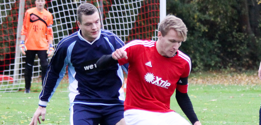 Stanislaw Nikiforow (re., hier noch im Trikot des TSV Burgebrach) traf im ersten Punktspiel nach seiner Rückkehr gleich vierfach. Es wird sicher nicht allzu lange dauern, dann wird er wieder eine zweistellige Torausbeute aufweisen. Denn in jeder seiner Herrensaisons traf der 27-Jährige bisher immer zweistellig.