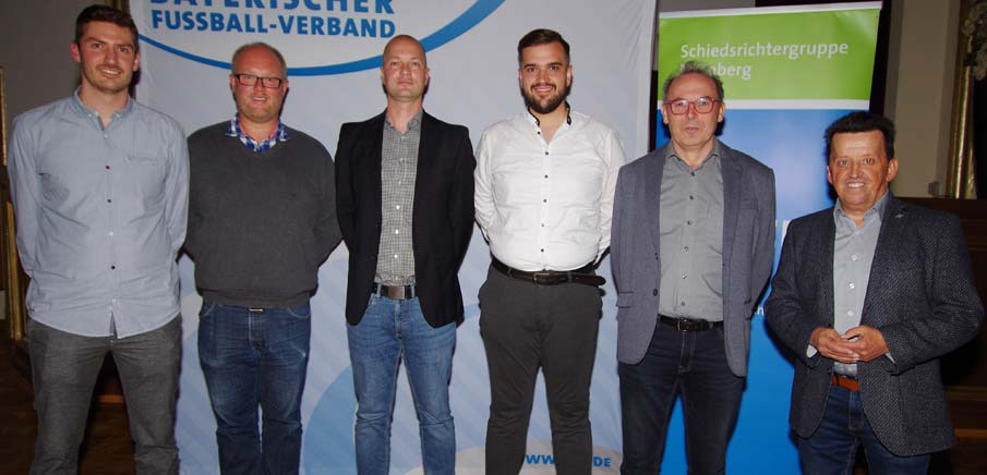 Sven Bode (3.v.l.) hat die Nürnberger Schiedsrichtergruppe zwei Jahre lang kommissarisch geführt. Nun wurde er ohne Gegenstimme offiziell für die nächsten vier Jahre als Obmann gewählt.