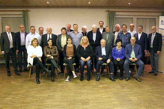 Gruppenbild der Geehrten des DFB-Ehrenamtspreises 2021 mit dem Stellv. Landrat Bruno Kellner (stehend, ganz links), Bezirksehrenamtsbeauftragten Siegfried Tabbert (stehend, ganz rechts), dem Kreisehrenamtsbauftragten Stefan Schmitt (stehend, 2.v.rechts) und dem Kreisvorsitzenden Manfred Neumeister (sitzend, rechts).